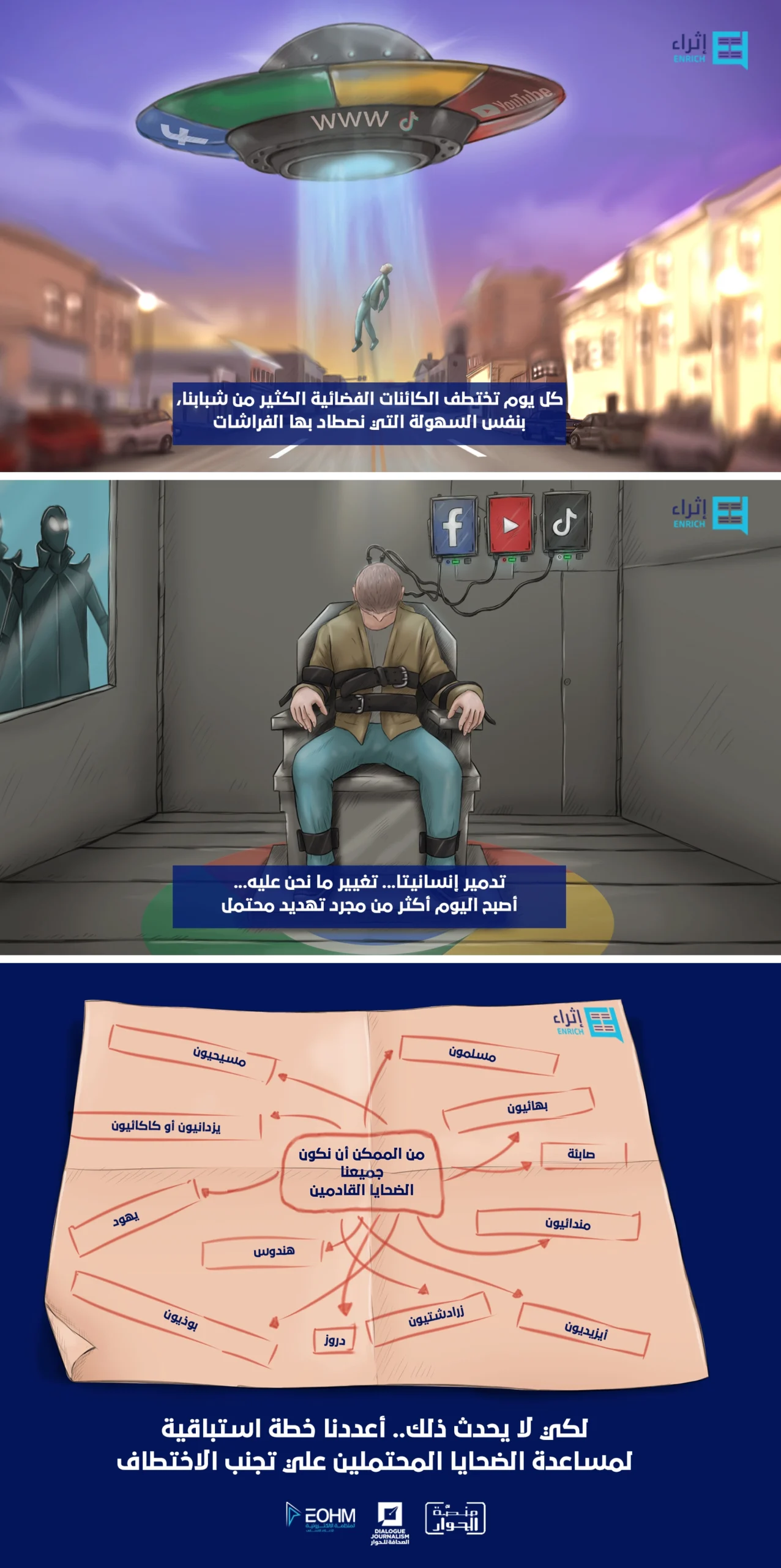 المنظمة الإلكترونية للإعلام الإنساني EOHM هي منظمة غير حكومية وغير ربحية تعمل على إنتاج مواد إعلامية وتنفيذ مشاريع رقمية تعزز من ثقافة التنوع والسلام.