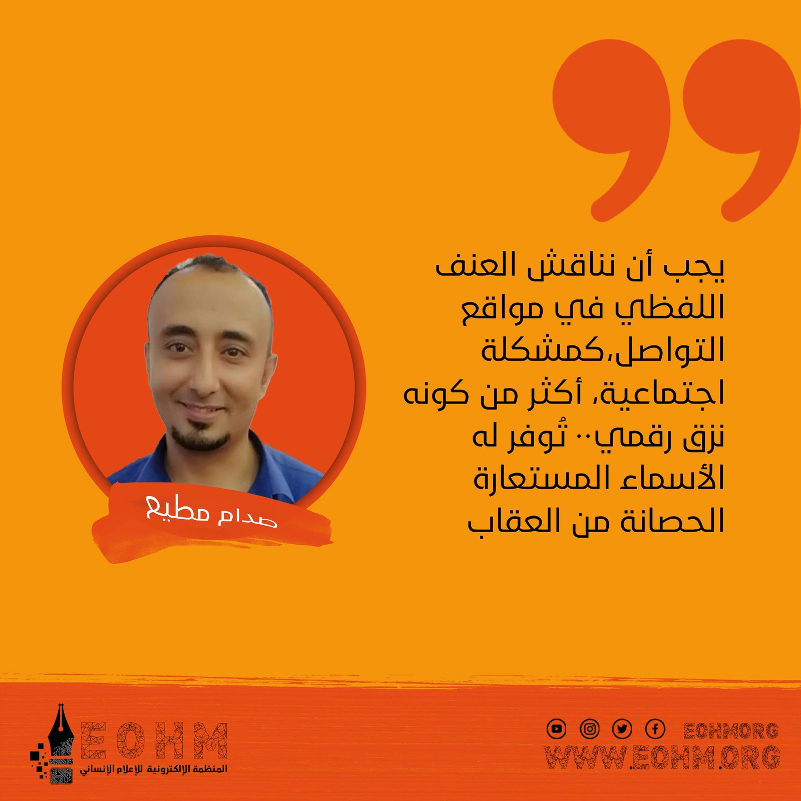 المنظمة الإلكترونية للإعلام الإنساني EOHM هي منظمة غير حكومية وغير ربحية تعمل على إنتاج مواد إعلامية وتنفيذ مشاريع رقمية تعزز من ثقافة التنوع والسلام.