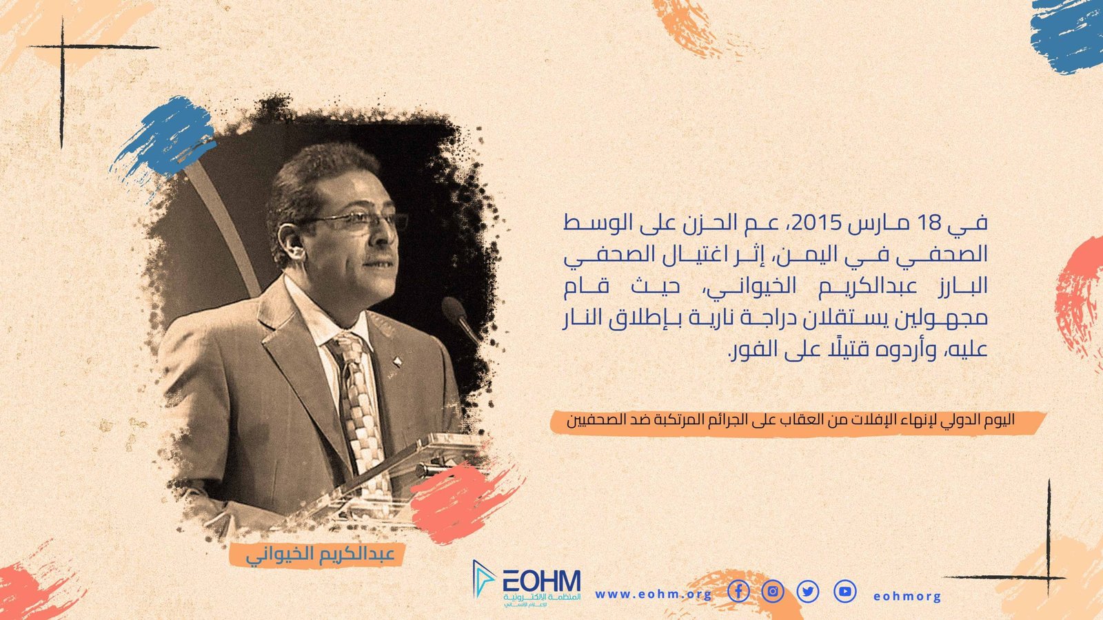 العودة إلى "قتل الصحفيين: اليمن بيئة غير آمنة" الصحفي عبدالكريم الخيوانيالصحفي عبدالكريم الخيوانيالتالي السابق