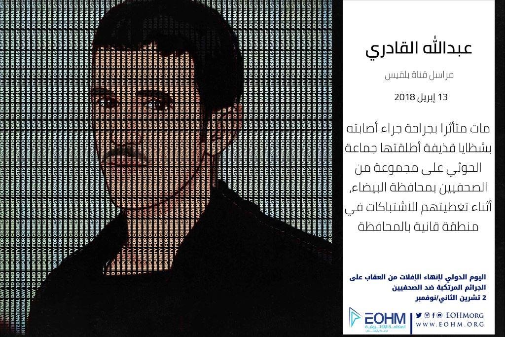 العودة إلى "قتل الصحفيين: اليمن بيئة غير آمنة" الصحفي عبدالله القادريالصحفي عبدالله القادريالتالي السابق