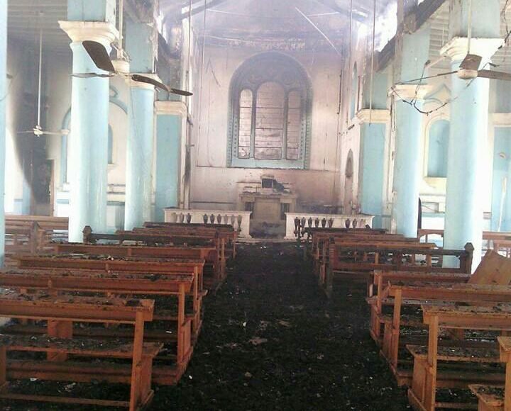 يقول: “في ظرف شهرين تعرضت الأماكن الدينية للاقتحام والنهب والقصف الجوي.” ويضيف: “في 31 يوليو 2015 مسلحون تابعون لحكومة الأمر الواقع اقتحموا كنيسة (الحبل بلا دنس) التي كانت متوقفة عن العمل. ما أدى لتحوّلها إلى هدف للطيران الجوي في 2 أغسطس 2015. تلاها في 16 سبتمبر 2015 اقتحام كنيسة البادري ونهب محتوياتها واحراقها من الداخل”.